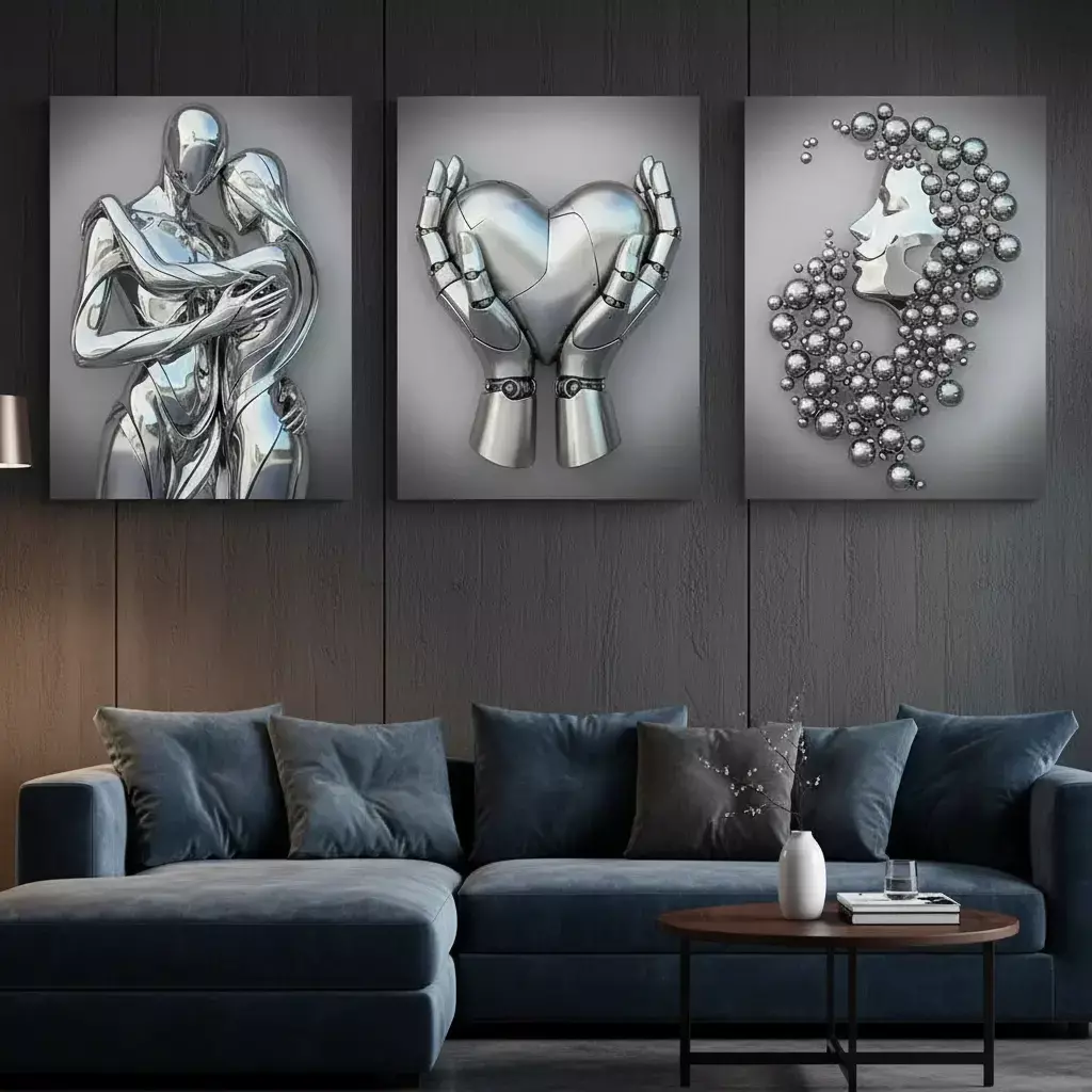 Este tríptico no es solo decoración: es un manifiesto visual. Tres piezas que capturan el abrazo, la unión y la fuerza del amor en un estilo moderno, metálico y lleno de carácter.