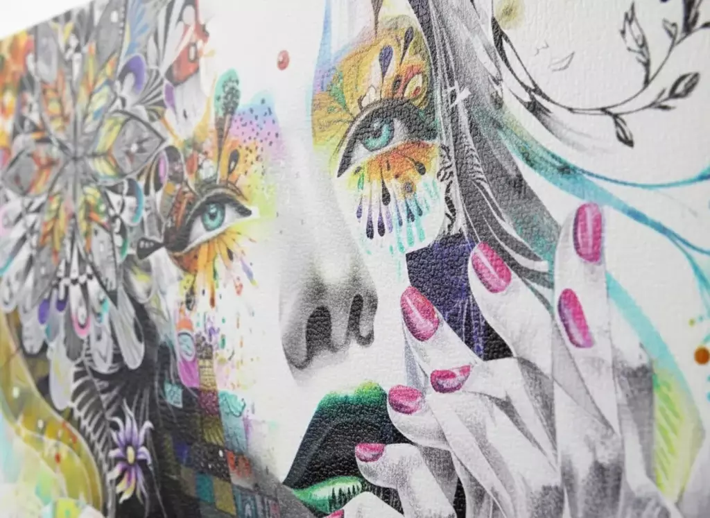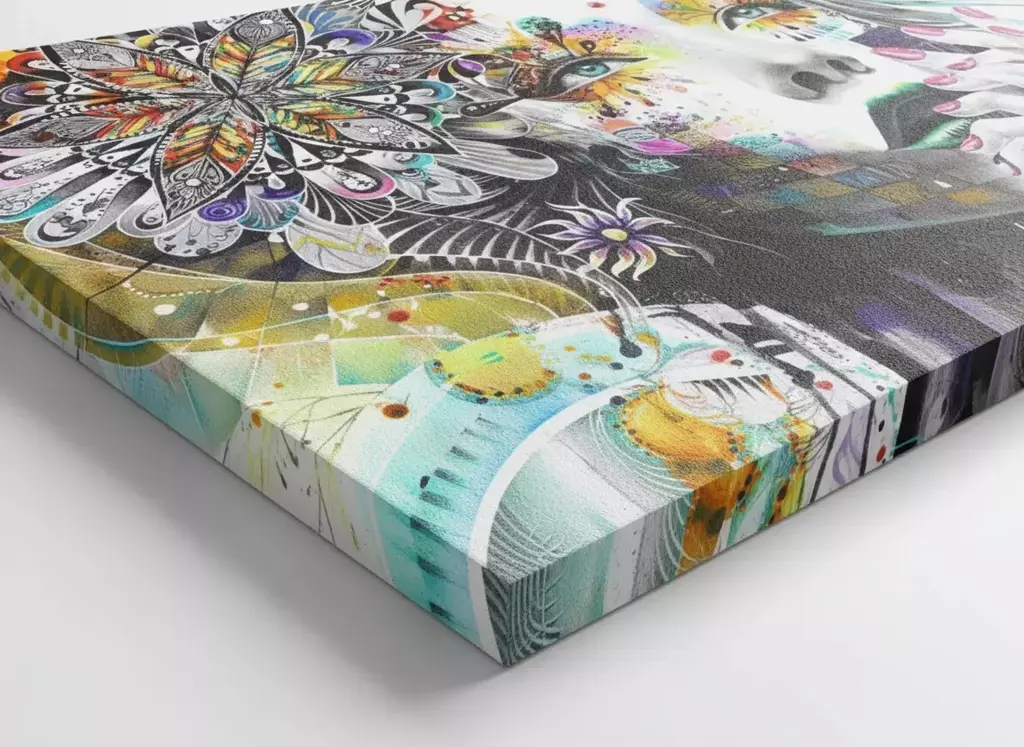 Disfruta de esta dama Alberta, en arte mixto multicolor.