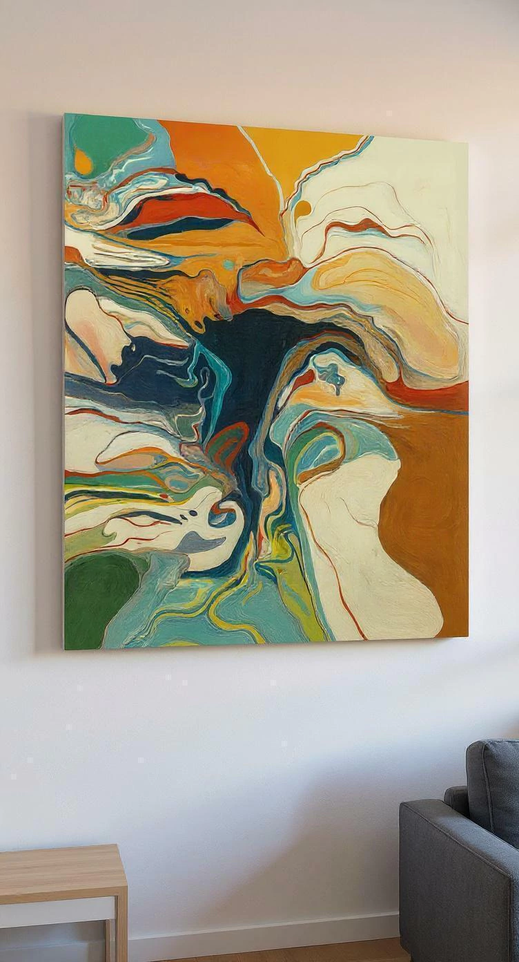 ¿Tu pared se siente vacía y sin vida, aunque el resto de tu espacio esté bien decorado? Este mural abstracto trae movimiento, energía y color para transformar cualquier ambiente apagado en un rincón vibrante y lleno de personalidad. Las paredes mudas enfrían tu hogar, hacen que los espacios luzcan incompletos y que la decoración no se destaque como debería. Con Ecos de Color Mural, vas a lograr un cambio instantáneo: sus formas fluidas y tonos intensos generan dinamismo y calidez, convirtiendo tu pared en un punto focal que todos van a admirar. Impreso en ecocuero de alta calidad, con diseño que continúa en los bordes, está listo para colgar y brillar desde el primer minuto. Ideal para: living moderno, oficina creativa, espacios de coworking, dormitorios juveniles, estudios artísticos o cualquier ambiente que necesite un golpe de energía visual. 👉 Dale hoy voz y movimiento a tus paredes con Ecos de Color Mural. Pedilo ahora y recibí tu obra lista para colgar.