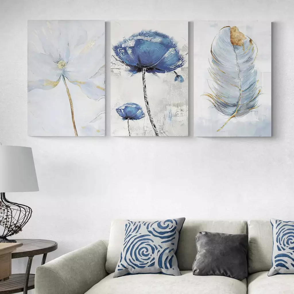 La manera perfecta de llevar la tranquilidad de la naturaleza al interior, este tríptico está compuesto por flores y plumas de colores suaves. Quedaría muy bien en cualquier lugar! Añade un toque de vitalidad a cualquier habitación con este cuadro en la pared. Es el complemento perfecto para la decoración minimalista y es muy fácil de colgar! Los colores relajantes de la pluma y las flores añaden un toque de elegancia a la imagen. Tríptico ideal para paredes de living, habitación y sala de estar. El juego incluye los 3 cuadros en el tamaño seleccionado.